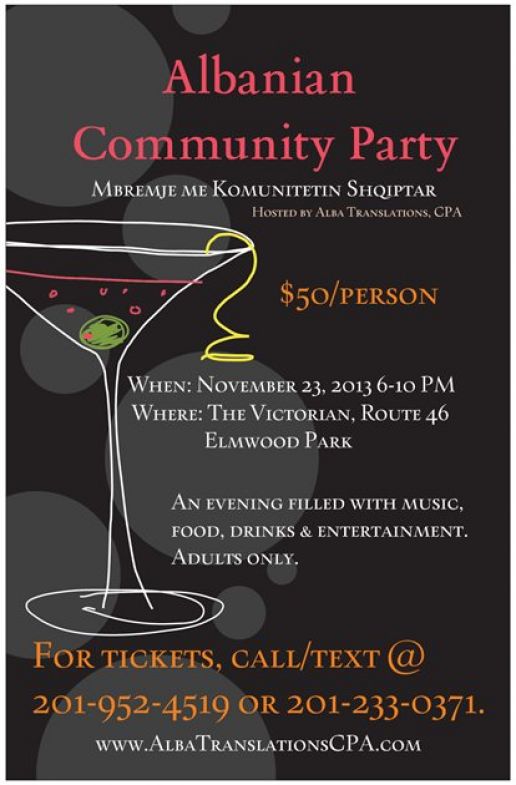 Alba Translations invites your to join us for a fun filled evening with music, food, and drinks. This event is for adults only ($50/person). To purchase tickets, please call/text 201-952-4519 or 201-233-0371 or email at andi.oparaku@gmail.com. Visit us on facebook @ AlbaTranslations or online @ www.albatranslationscpa.com