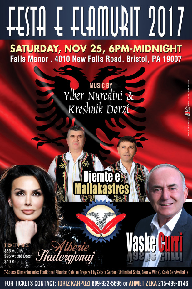 Come join us for Festa E Flamurit 2017 Featuring for the first time in America!! Djemte E Mallakastres & Vaske Curri And for the first time in Philadelphia Alberie Hadergjonaj. contact Ahmet Zeka 215-499-6146 or Idriz Karpuzi 609-922-5696