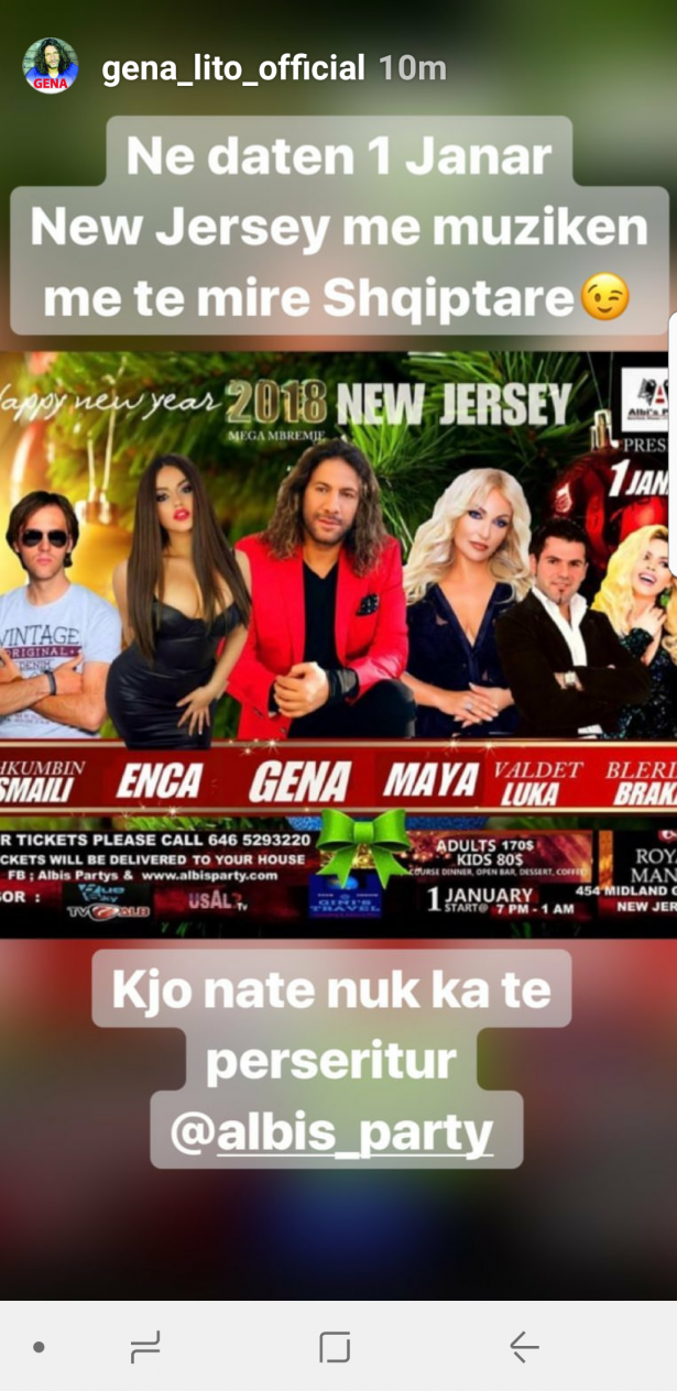 COME CELEBRATE NEW YEAR'S DAY WITH US! Experience an authentic Albanian New Years style. Enjoy the New Year charm with your loved one and friends with us where you can celebrate the festivities in a unique atmosphere. Party the night away with bright lights and lively music, and welcome 2018 in style with an authentic Albanian New Year's event. GENA, SHKUMBIM ISMAJLI, ENCA, MAJA ,BLERINA BRAKA and VALDET LUKA will make it a truly memorable celebration. Tickets are priced at $170 per adult and $80 gor kids. For any reservations contact the number : 646 529 3220