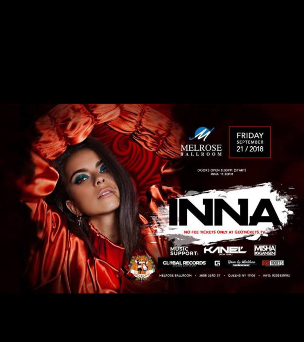 Friday, September 21st. Melrose Ballroom. Inna live in concert in New York! Doors 8 PM. Concert 11:30 PM. 21+ w/ID. Photo and Video by Geometria New York. Info & Reservations: 929-293-9193