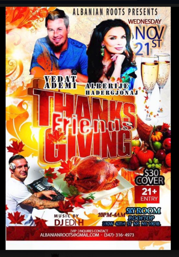 Join Albanian Roots Wednesday November 21.2018 at 10:00PM as we celebrate Thanksgiving at our rooftop location Sky Room in Manhattan.