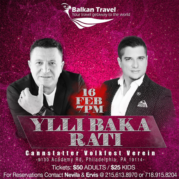 Valentine's Party with Ylli Baka & Rati. You don't want to miss this event. A perfect combination of singers that with their live performance will make it an incredible night to remember . Call us at 215.613.8970 to reserve your spot.