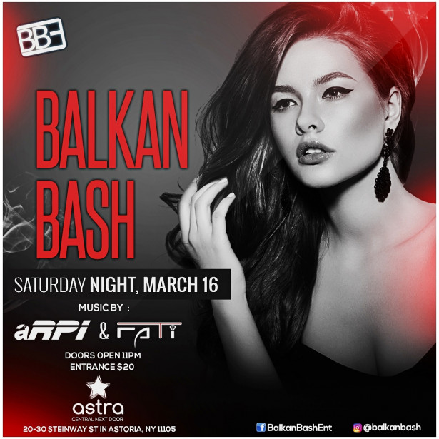 The BALKAN BASH is back on Saturday night, March 16th at Astra (Central Next Door) in Astoria, Queens NY. The Balkan music will be provided by DJs aRPi & Fati. Doors open 11pm, ages 21+, and entry $20. Please contact Rasim 201-458-2187 for VIP (limited tables available).