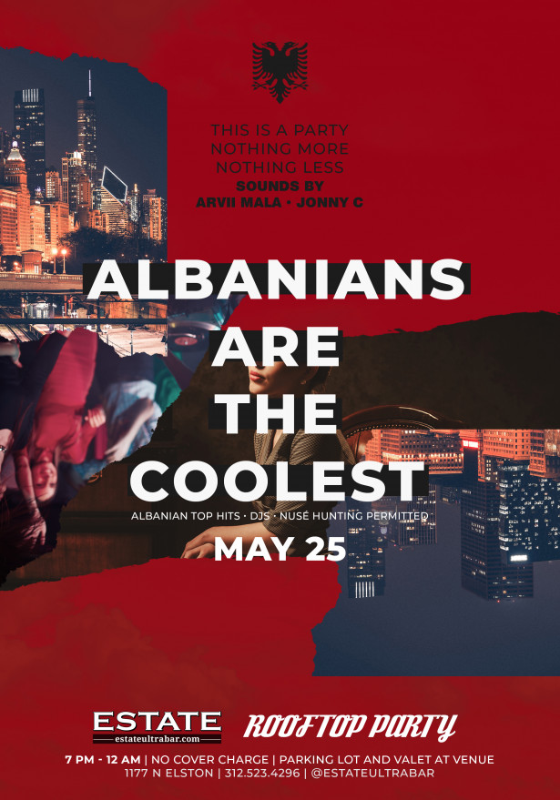 Albanian Rooftop Party This is a Party nothing more nothing less Saturday May 25th doors open at 7pm RSVP for Free Entry https://bit.ly/2UXFsgO 21+ to enter Please contact us to reserve table for bottle service limited tables available (Baresha 630-391-2486) please text me or message me for details Lets all get together and have a great time and show chicago how Albanians party!