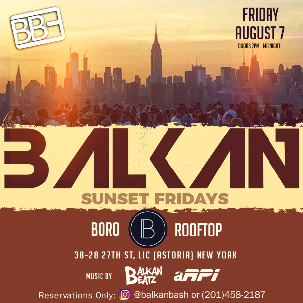 BALKAN SUNSET FRIDAYS is happening every Friday night for the rest of the summer. Doors open 7pm - midnight. You MUST reserve a table in order to enter! Please contact Rasim for more info: @balkanbash on Instagram or text 201-458-2187