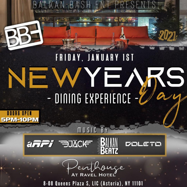 Celebrate the New Year on Friday, January 1st. DJs aRPi, Jack, Balkan Beatz, & Doleto will provide the music all night. Doors open 5pm - 10pm on New Years Day (not eve). Dinner and drinks will be surved all night as you party the night away overlooking NYC. Great views, great music, and great atmosphere. LIMITED space so please contact via Instagram @balkanbash or call/text 201-458-2187 to RSVP.