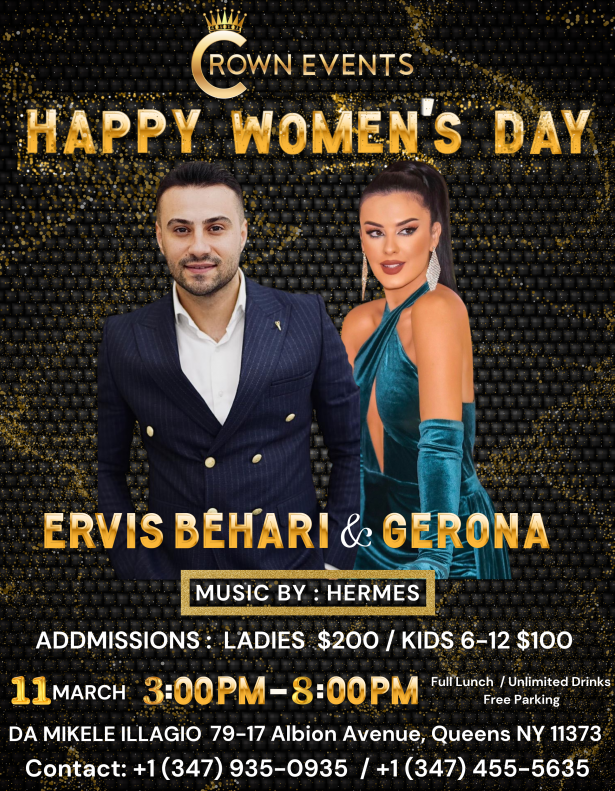 Celebrate International Women’s Day with the charming Ervis Behari, for his first time ever in New York accompanied by our talented Gerona. Ju ftojmë për të festuar ditën ndërkombëtare të gruas me të veçantin Ervis Behari, për herë të parë në New York, i shoqëruar nga këngëtarja e talentuar Gerona.