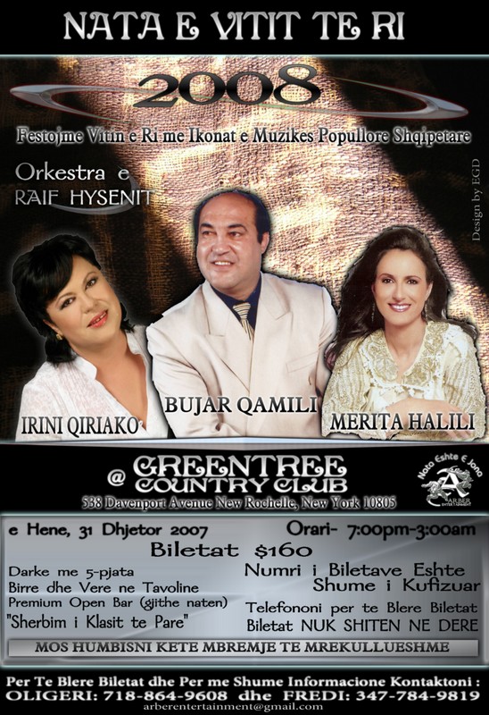 ARBER ENTERTAINMENT INC, SJELL PER JU NE: GREENTREE COUNTRY CLUB Ikonat e Muzikes Shpiptare; BUJAR QAMILI; IRINI QIRIAKO; MERITA HALILI; RAIF HYSENI ME ORKESTER