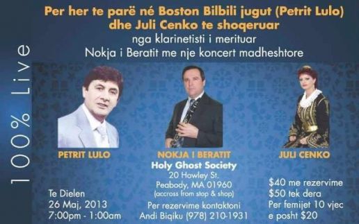 Bilbili I Jugut (Petrit Lulo) vjen per here te pare ne Boston I shoqeruar nga kengetarja Juli Cenko dhe klarinetisti I merituar Novrus Vengo. Come and enjoy this fun night with us!