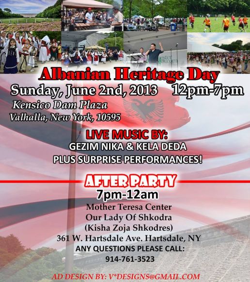 Our annual Heritage Day in partnership with Westchester County Parks -- music, dancing, sports tournaments, food/picnicking, kids activities, vendors selling Albanian products -- a fun day for the entire family. We expect over 5,000+ attendees. If you wish to SPONSOR this EVENT or If you are a VENDOR and want to promote your product, space is available but you must pre-register. With thousands of attendees it's the perfect place to promote your business or organization. Call Our Lady of Shkodra Church at 914-761-3523 or Fran Cotaj at 917-917-494-6029. NOTICE REGARDING PARKING: Kensico Dam Plaza has about 1,000 parking spaces. As in years past, there will be police at the Kensico Plaza coordinating traffic, and they will guide you as to where you can park your car.