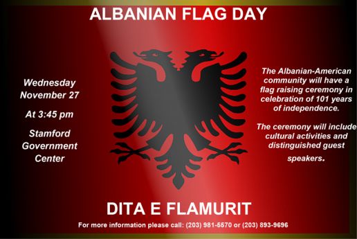 Albanian Flag Day 2013 in Stamford, CT! Flag raising ceremony to celebrate the 101st year of the independence of Albania. The event will take place at the Stamford CT Government Center and will include cultural activites and distinguished guest speakers.