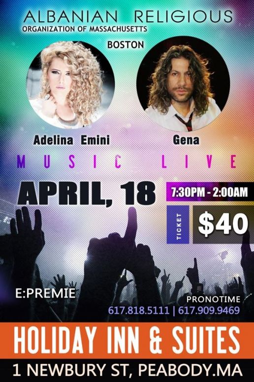 Albanian Religious Organization of Massachusets presents: Adelina Emini dhe Gena. Tickets: $ 40