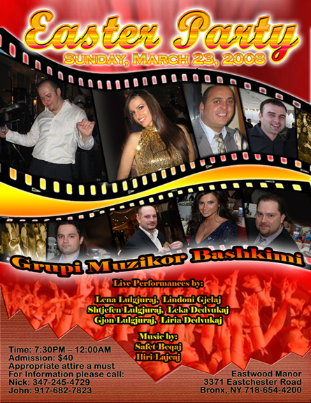 Easter Party, March 23, 2008 @ The Eastwood Manor. Live performances by Lindoni, Liria, Leka, Grupi Bashkimi Lena, Steve, Gjon & Iliri.