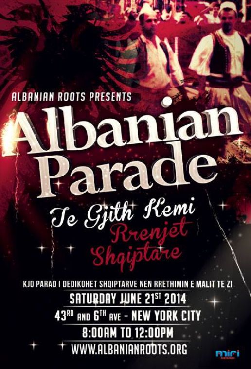 Albanian Parade NYC When: Saturday June 21,2014 Where: 43rd Street & 6th Avenue Time: 8:00AM Gathering Donate/sponsor the parade: https://fundly.com/albanian-parade