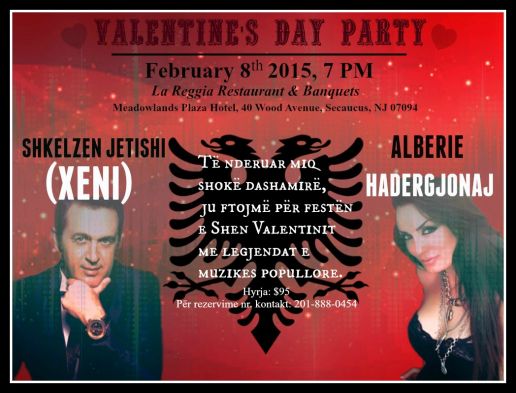 Tн‚ nderuar miq shokн‚ dashamirн‚, ju ftojmн‚ pн‚r festн‚n e Shen Valentinit me legjendat e muzikes popullore (Shkelzen Jetishi XENI dhe Alberie Hadergjonaj) qн‚ do mbahet nн‚ restorantin LA REGGIA nн‚ datн‚n 8 Shkurt 2015. Pн‚r mн‚ shumн‚ informacion dhe detale, kontaktoni Sefer Nasufi-n nн‚ numrin 201-888-0454. La Reggia established in 1998 quickly was nicknamed думThe Little Italy of Secaucusдуќ and for good reason. A delicious Italian Restaurant offering an Italian Cuisine and a tasty vintage wine collection. La Reggia proudly serves the finest Italian Cuisine, prepared one dish at a time. Let us help make your occasion a memorable one. Exclusively one wedding at a time. La Reggia is conveniently located in the Meadowlands Plaza Hotel in North Jersey near the Izod Center, Giants Stadium, Meadowlands Racetrack, Secaucus Outlets and New York City.