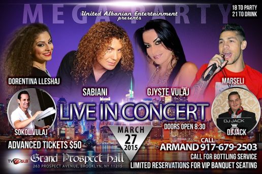 Come celebrate with us on March 27 at Grand Prospect Hall. Live music by Gjyste Vulaj SABIANI Dorentina Lleshaj Marseli Sokol Vulaj and DJ Jack. Please do call in advance for reservations limited tickets. For battling service as well as VIP Tables call 2 weeks in advance as they are very limited. Dinner will be served at the VIP tables as requested and will get a free battle of Gray Goose. Advance tickets will be delivered to your door step at free of charge or you can pick them up at the check in on the night of the party. Don't forget to bring KARIKATORET me fishek se KALLASHIN e KENA Vet!!!! IT WILL BE A NIGHT TO REMEMBER!!!!!!