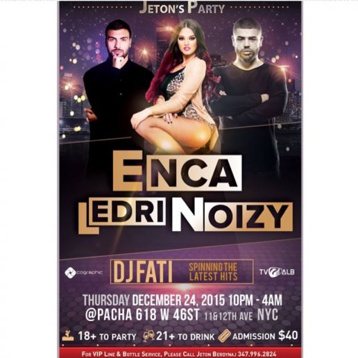 JETON'S PARTY first time in USA LEDRI & ENCA, also performing NOIZY DJ FATI. Thursday December 24, 2015 @PACHA 618 W 46st, 11 & 12th AVE NEw York City. 18+ to enter, admission $40. For Bottle service please call Jeton Berdynaj 347.996.2824. Flyer will be posted within a few days.