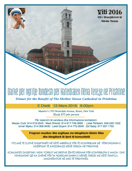 Darke per ngritje fondesh per katedralen nena tereze ne Prishtine Hyrja $75 per person