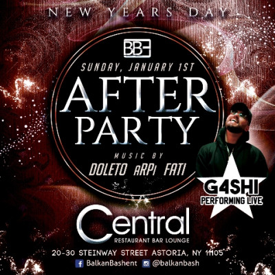 * End the holidays with a bang at The AFTERPARTY * On New Years Day, Sunday January 1st, we will have an event back in the main room of Central Lounge with a LIVE performance by G4SHI around 2am. There is no school or work the following day. Doleto, aRPi, & Fati will provide the music as always and doors open 11pm-4am. Age is 21+ and entrance is $20. Last year we had a packed house, so please try and come earlier. V.I.P. Deals, please text Rasim Pjetrović at 201-458-2187 or message him on Facebook. Only 3 tables left. SEE YOU THERE!!!