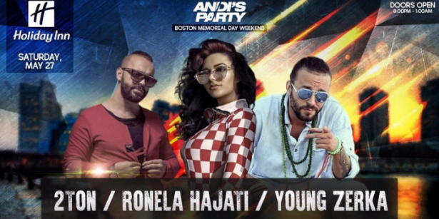 ANDIS PARTY Presents BOSTON MEMORIAL DAY WEEKEND PARTY Featuring YOUNG ZERKA -- RONELA HAJATI -- 2TON SATURDAY MAY 27 @ 8:00 PM Holiday Inn & Suits Boston-Peabody 1 Newbury Street Peabody, MA 01960 Tickets: $40 Online / $50 @ The Door (ALL AGES WELCOME)