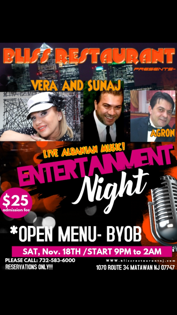 Bliss Restaurant presents Albanian entertainment night with Vera Orucaj and Sunaj Saraci