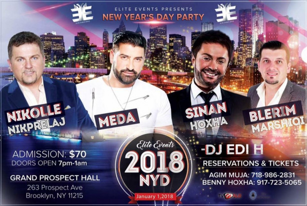 JANUARY 1 @ The Grand Prospect Hall.... **Nikolle Nikprelaj** Meda **Sinan Hoxha ** Blerim Marshiqi! $70, All ages welcome. 7pm to 1am. Call for your reservations & info. Agim 718-986-2831 or Benny 917-723-5065