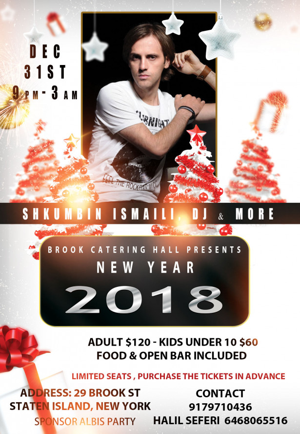 NEW YEAR'S EVE PARTY! It's Time to get rowdy and welcome the new year at Brook Catering Hall! Dance all night long with ISMAIL SHKUMBINI, DJ and More!