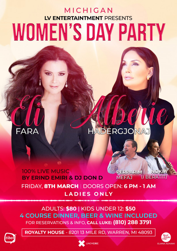 To all the Albanian ladies out there, come out and celebrate women’s day on March 8th at the Royalty House. Ticket includes a four course dinner plus unlimited beer and wine. Doors open at 6pm. Tickets must be prepaid! No tickets at the door.