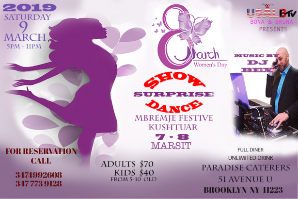 All Albanian Ladies. Mother’s , Sisters, Daughters come to celebrate with us in Bona’s & Bruna’s Party . Put the best dress on the most shiny lipstick and comfortable shoes Lets dance drink and have amazing night together We deservs more a lot more.. let’s make this night unforgettable.The best music ever from dj Bex full dinner.. unlimited drink ... coffee cake Where: “Paradise catering “ Ave U Brooklyn Ny 11223 . Present Usalb television... for ineterview ... Price for ticket: Adults $70 Kids $40