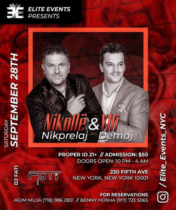 Elite Events presents YLLI DEMAJ & NIKOLLE NOKPRELAJ at 230 Fifth! Spinning: DJ Fati. Saturday night September 28th. 10pm to 4am. $50 tickets, sold at the door. 21+ with proper id. Dress to impress. Call for VIP tables: Agim 718-986-2831 or Benny 917-723-5065