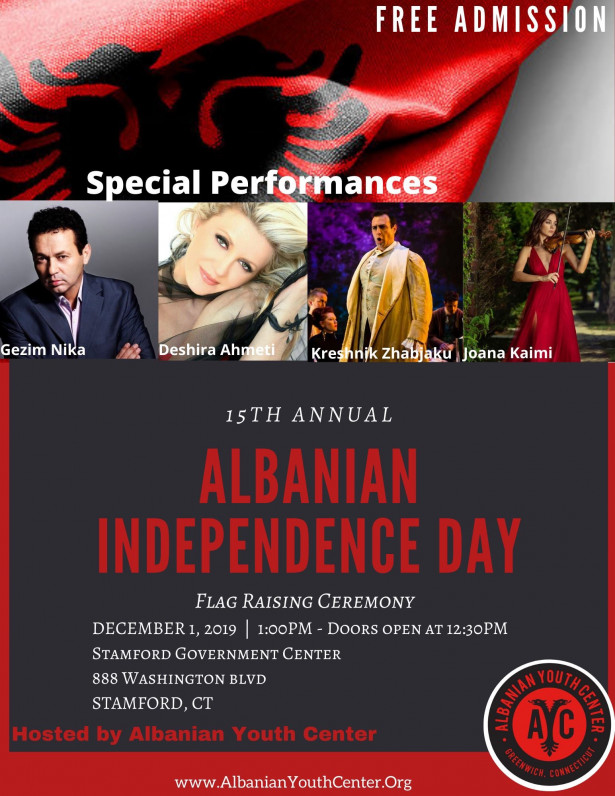 Join the Albanian Youth Center along with Distinguished Guest Speakers, Dignitaries, fellow Albanian-American Friends, Family and Neighbors as we all come together for our Annual Flag Day Celebration. The ceremony will include a number of distinguished guest speakers and dignitaries, followed by traditional Albanian dances, theatrical and musical performances from professionals and amateurs in the Albanian-American community. The event is free of charge and all are welcome to attend. info@albanianyouthcenter.org