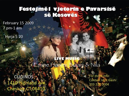 MBREMJE FAMILJARE PER PAVARSINE E KOSOVES. JU ARGETOJNE KENGRTARET EMINE HASIMI, ANILA & BUJARI MUZIKE NGA KOSOVA,SHQIPERIA, & MACEDONIA. HYRJA $20 EDHE $10 PER FEMIJE NDER 12.