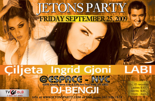 Jetons Party Next Friday Septemner 25th First Albanian Party After The Summer Break@ Espace Presents Live Labi, Qiljeta And Ingrid Gjoni Doors Open At 10pm 18+ ID Required Admission 30 Dollars For Ladies 35 For Men
