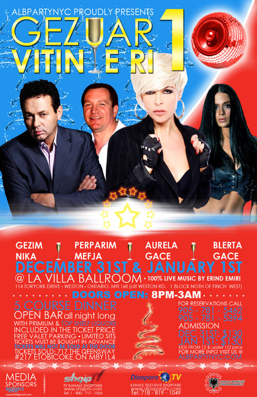 ALBPARTYNYC SJELL PER JU 2 MBREMJE MADHESHORE TE VITIT TE RI 2010 ME YJET E MUZIKES POPULLORE SHQIPTARE. 31 DHJETORE 2009 DHE 1 JANAR 2010 TE FTUAR SPCIAL AURELA GACE, GEZIM NIKA, PERPARIM MEFAJ,BLERTA GACE. \ORKESTRA"ERIND EMIRI NE KEYBOARD DHE PERPARIM MEFAJ NE KLARINET."""