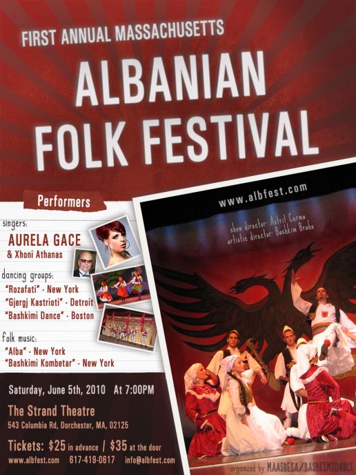 For the first time ever, in the oldest Albanian community in the United States, ancient Albanian folkore and costumes from different regions of Albania will be in full display. The Massachusetts Albanian American Society (MAASBESA) and Bashkimi Dance Group are proud to announce the First Annual Massachusetts Albanian Folk Festival to be held at Bostonду»s Strand Theatre on June 5th. For more info:www.albfest.com