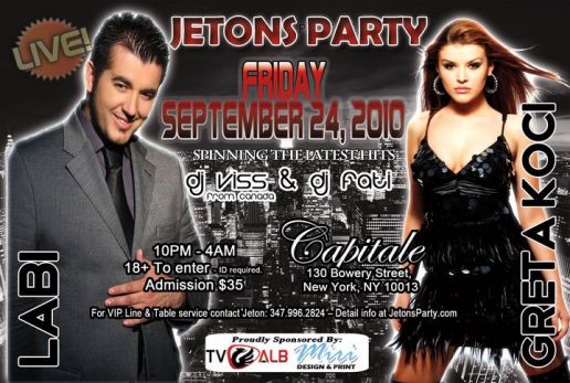 Friday September 24th in NYC with GRETA KOCI & LABI, Spinning the night DJ VISS from Canada and DJ FATI. Saturday Sep 25th Connecticut, Friday Oct 1st in Canada...only LABI will perform in Canada, Saturday Oct 2nd Chicago, info will be up at JetonsParty.com within a few days.