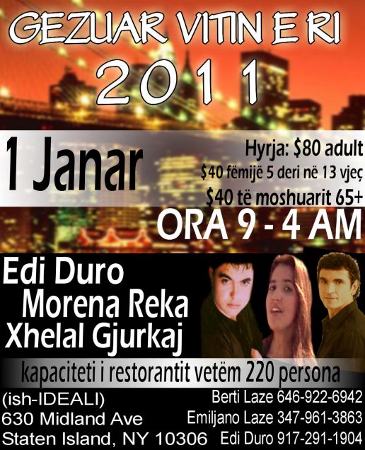Nata e dyte, viti i ri ne New York ne dt. 1 janar, me kengetaret Edi Duro, Morena Reka, & Xhelal Gjurkaj