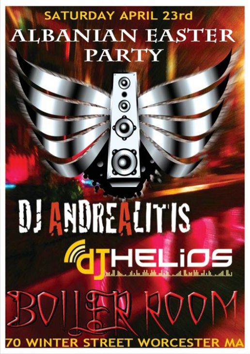 ALBANIAN EASTER PARTY TWO ROOMS THREE DJS!!!! Come out to The Largest Entertainment Complex In Central Mass ! Boiler Room is a Under Ground Night Life Expericence with the hottest entertainment around !! Firts Room : ***DJ ANDREALITIS*** and ***DJ HELIOS*** will be spinning the Hottest Albanian and International Music!!!!!!!!!! Second Room : *** DJ ART BEATZ*** will be playing nothing but your favorite Hits!!!!!! Only at THE BOILER ROOM!!!!!
