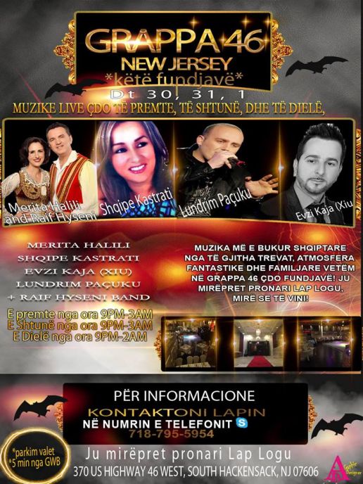 Grappa 46 New Jersey Live Albanian Music, **all Weekend Fri 30oct Sat 31 Oct Sun 1 Nov** Halloween Party
